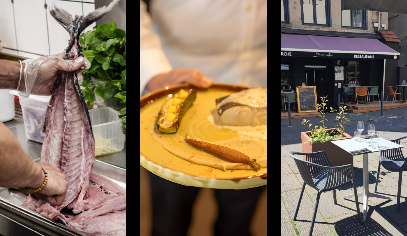Être un restaurant semi-gastro à Saint-Étienne, c’est savoir travailler en complicité avec le territoire. Le Restaurant L’Hédoniste collabore quotidiennement avec les artisans de la Place Grenette : Poissonnerie Robert, Fromagerie Mons, Cuiz’in sur Cours, épicerie Chez l’Italiano… Une véritable dynamique de village en plein cœur de la ville, à quelques pas de la Place Jean-Jaurès, du Zénith, du Musée de la Mine et du Parc François-Mitterrand. Une adresse où le local n’est pas une promesse marketing, mais une réalité quotidienne.